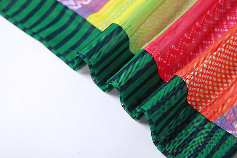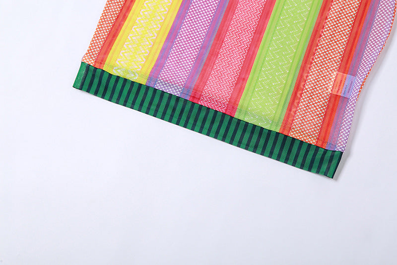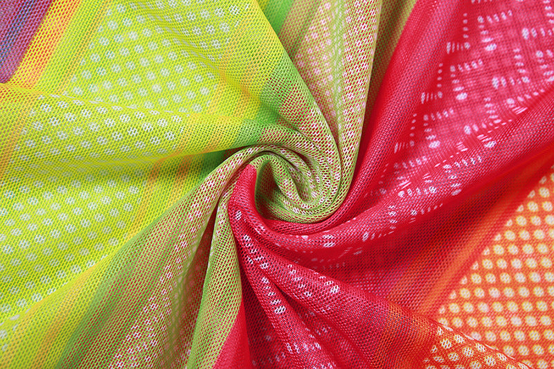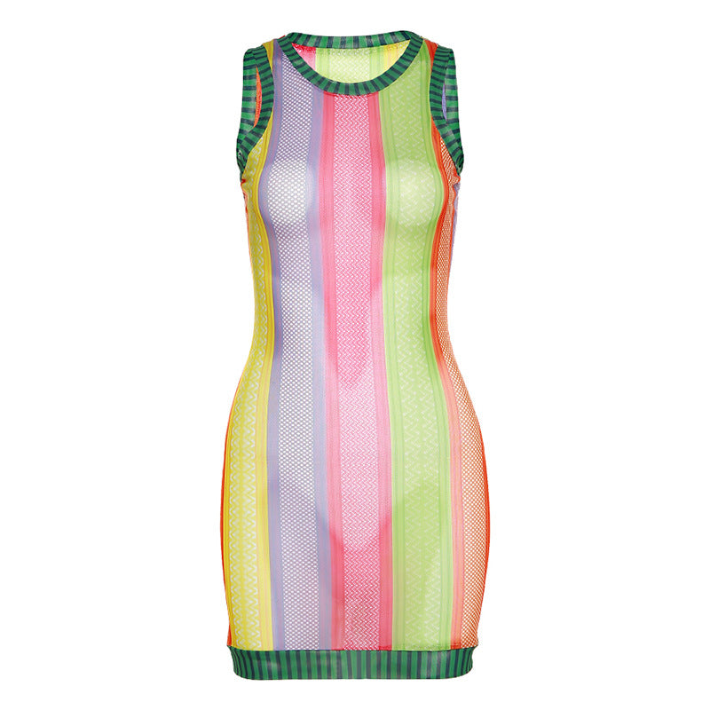 Women's Mesh Sheer Colorful Sleeveless Bodycon Print Dress
